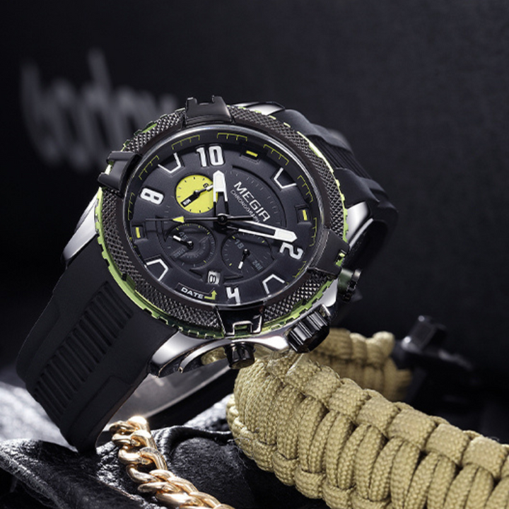 MEGIR 2200 Sport Chronograph – Luminous Blue Silicone Watch for Men